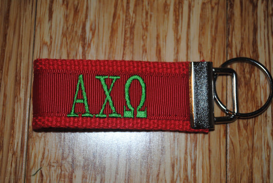 Alpha Chi Omega Sorority Keychain/SMALL/Solid Ribbon/Keyfob/Monogram/Choose Design/Sorority/Letter/Licensed product/Embroidery 3 1/2" long